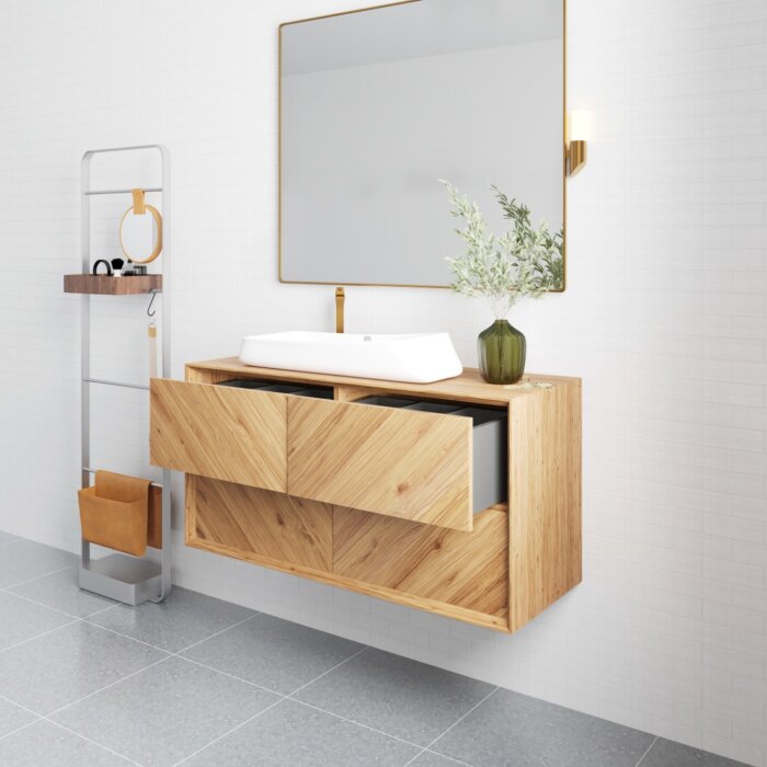 A natuurstenen waskom offers durability and a luxury appearance. Additionally, it complements wood beautifully.